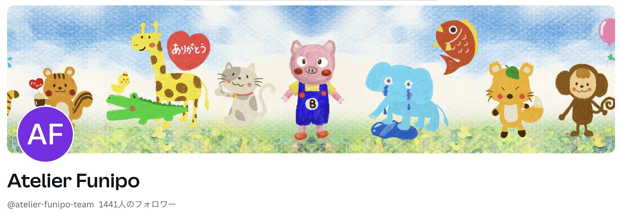 他にも、ご家庭の知育や療育、特別支援教育の現場で活用できるCanvaテンプレートも以下のCanva公式ページで公開しています!『Atelier Funipo』を『フォロー』すると、いつでも最新の特別支援教育テンプレートにアクセスできます。ぜひあわせてご活用ください。以下の動物の可愛いイラストが並んだ「Atelier Funipo」の画像をクリックすると、Canva公式クリエーターページに飛びます。
