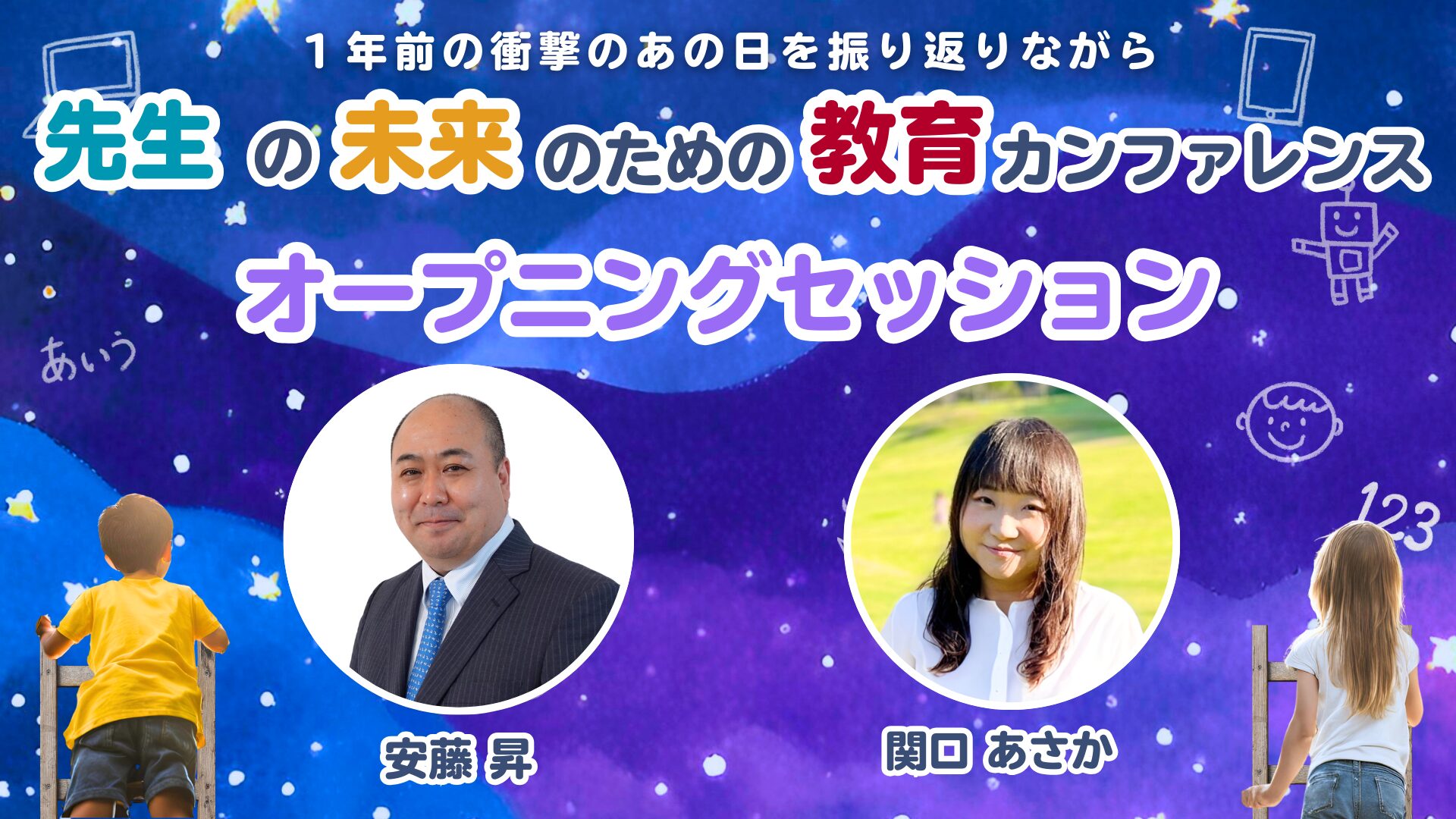 衝撃!?のあの日。私たちを取り巻く社会が大きく変わりました。予測不可能であり、AIやテクノロジーの発展が急速に進む現代の先生や子どもだちに必要な学びや教育は何か、今回のカンファレンス立ち上げ者である、WIEE Talks共同代表安藤昇先生、関口あさか先生によるセッション!
