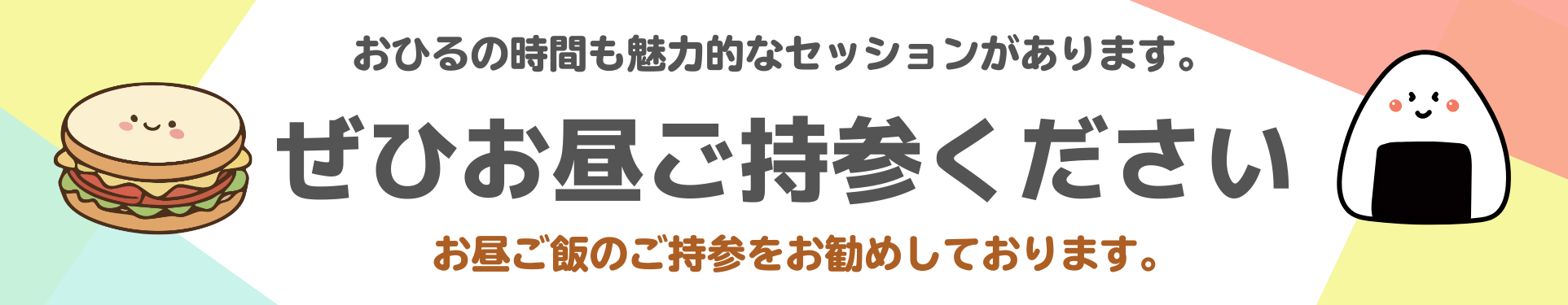 ※会場の一部エリアでは、お昼ご飯を食べながらセッションにご参加いただけます。席に限りがありますので、譲り合ってのご利用をお願いします。