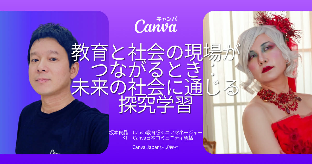 教育界で実践・発信してきた坂本と、ビジネス現場でデータ活用を推進してきたKT。異なる場所で活動してきた二人がCanvaで出会い、授業づくりや現場の課題を持ち寄って対話する中で、実はそれぞれが進めてきた探究学習の流れとデータ活用のサイクルが同じ構造だと気づきました。本セッションでは、Canvaを「思考を可視化し、試行錯誤を共有し、改善につなげる場」として捉えながら、教室の学びが未来の社会・仕事と直結していることを二人の視点で照らし、子どもたちが現場で活躍できる土台をどう育てるかを紐解きます。