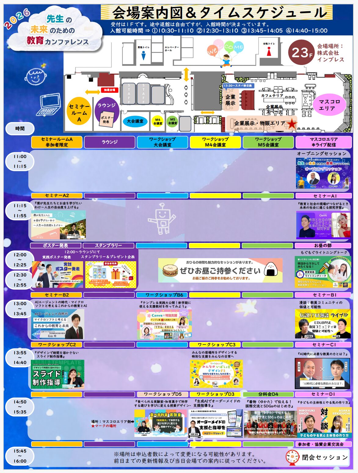 必ずイベントの【注意事項】・【免責事項】及び各セミナーやワークショップの参加条件についてをご確認及び同意の上お申し込みください。