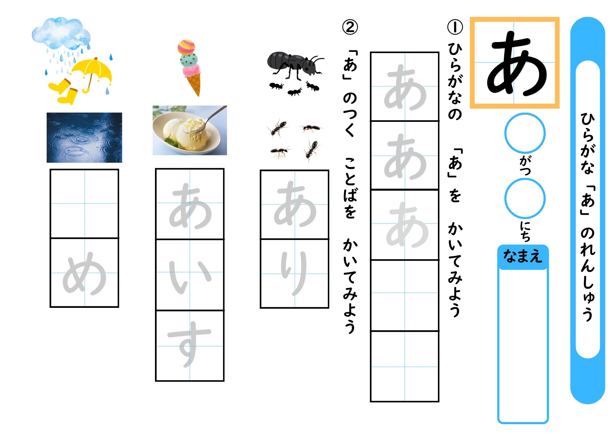 「あ」の学習プリント