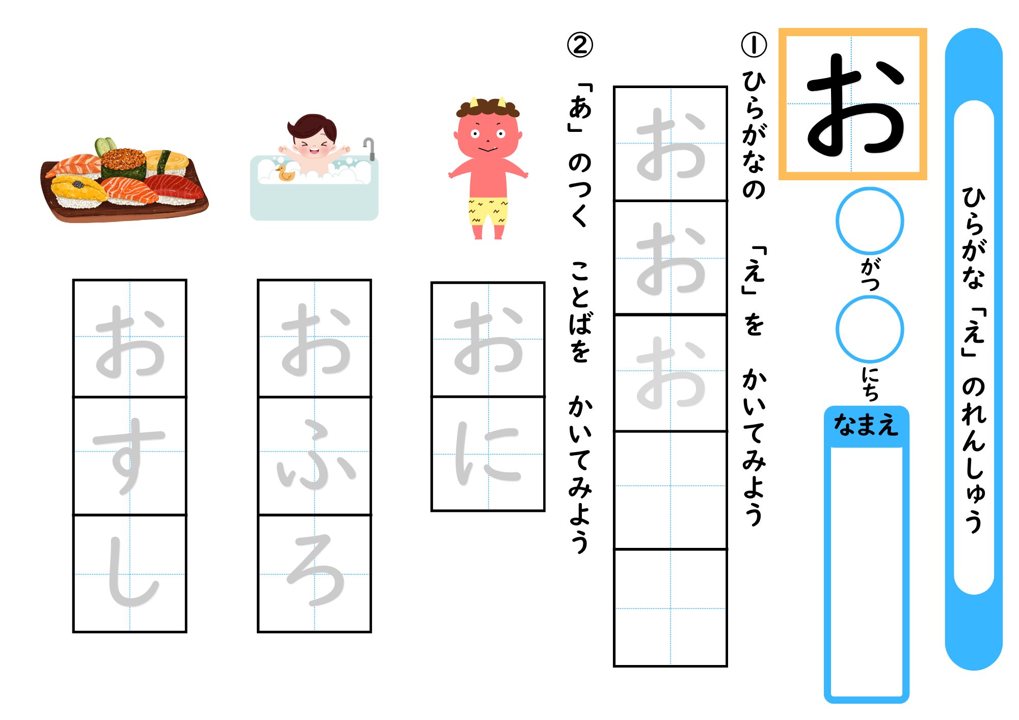 「お」の学習プリント