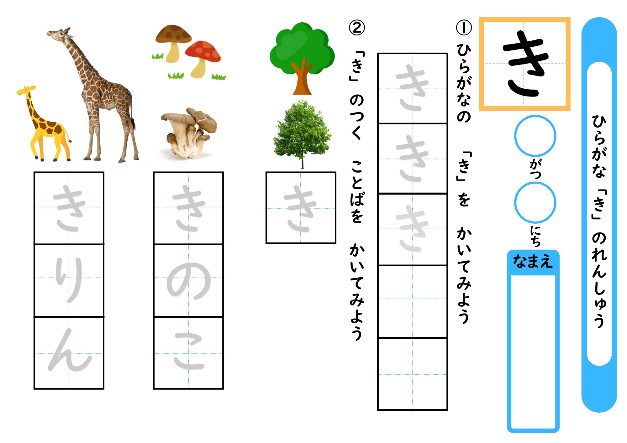 「き」の学習プリント
