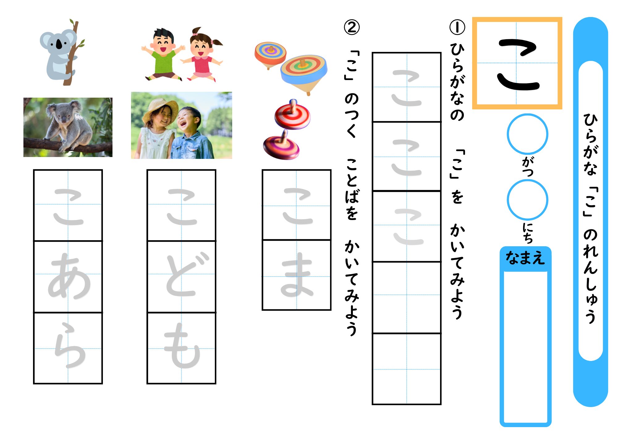 「こ」の学習プリント